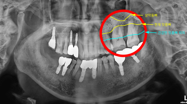 본 내용은 특정 치료 결과를 보장하기 위한 자료가 아니며, 환자마다 잔존골 상태·전신 질환·흡연 여부·구강위생 상태 등에 따라 치료 계획과 예후는 달라질 수 있습니다. 정확한 진단은 임상 검사와 영상 평가를 통해 개별적으로 결정됩니다.